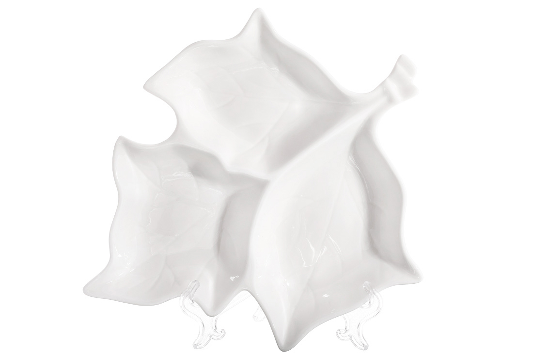 Блюдо порцелянове сервірувальне Лист 25.5см, колір - білий із золотим обідком
