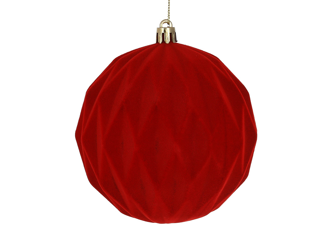 Ялинкова куля Ромб увігнутий з флоковим напиленням 10см, колір - червоний