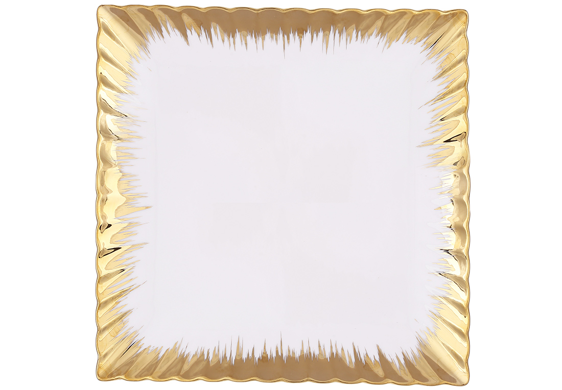 Блюдо порцелянове квадратне із золотим обідком Хвиля 25.5см