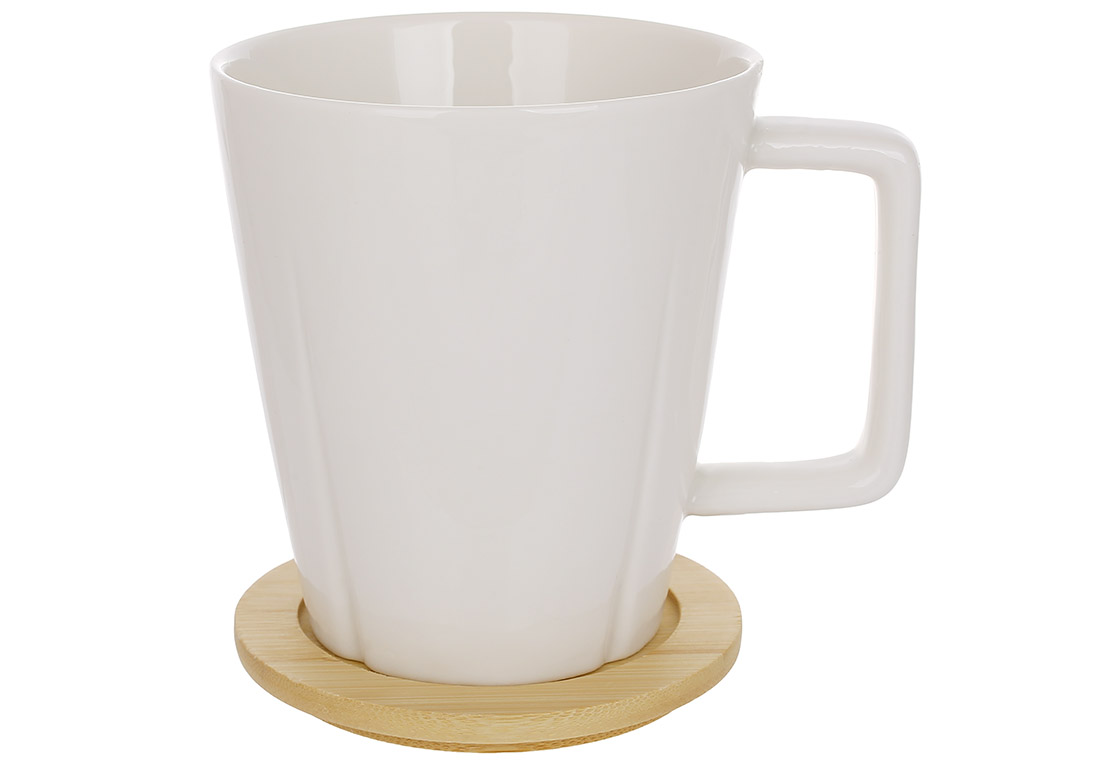 Кухоль порцеляновий на бамбуковій підставці 300мл Уцінка - фабричний брак