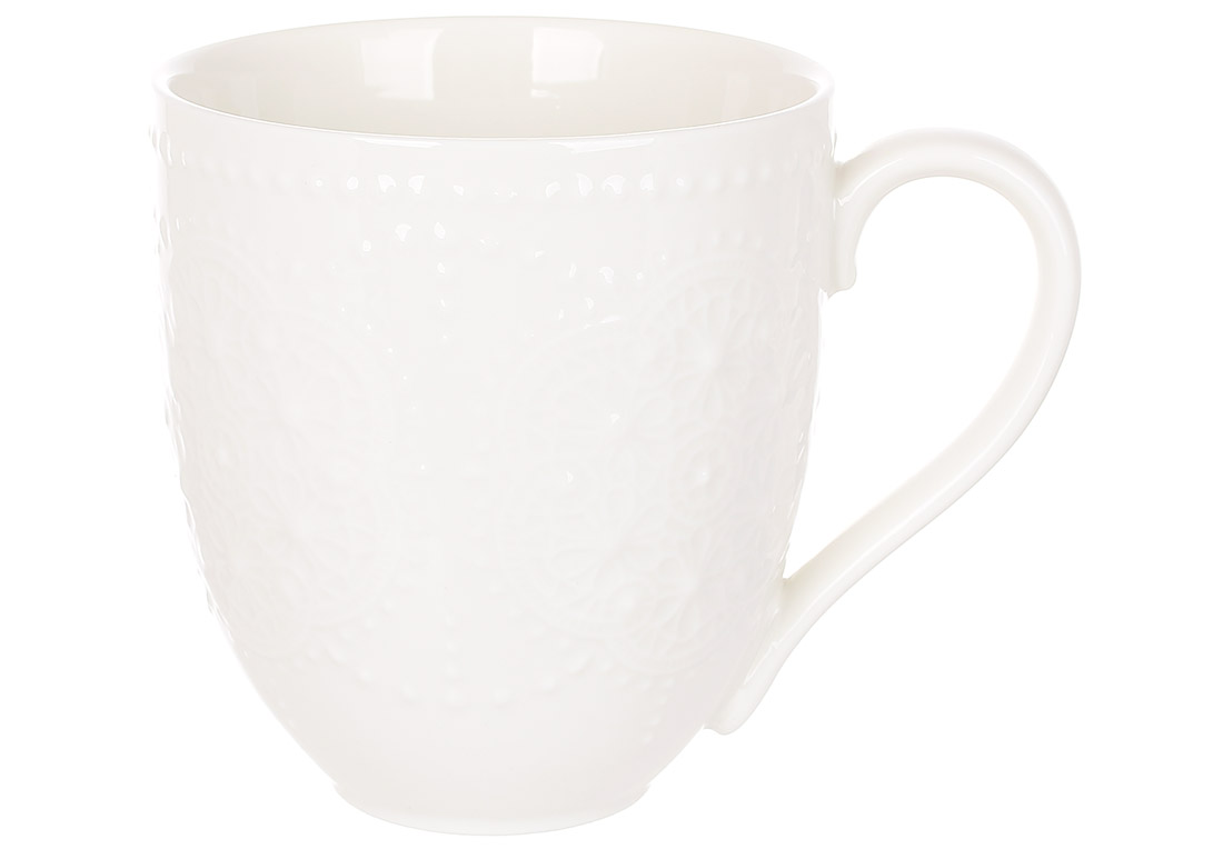 Чайний фарфоровий набір Ніжність: 5 чашок 250мл, 5 блюдець, колір - айворі з квітковим дизайном та золотим обідком