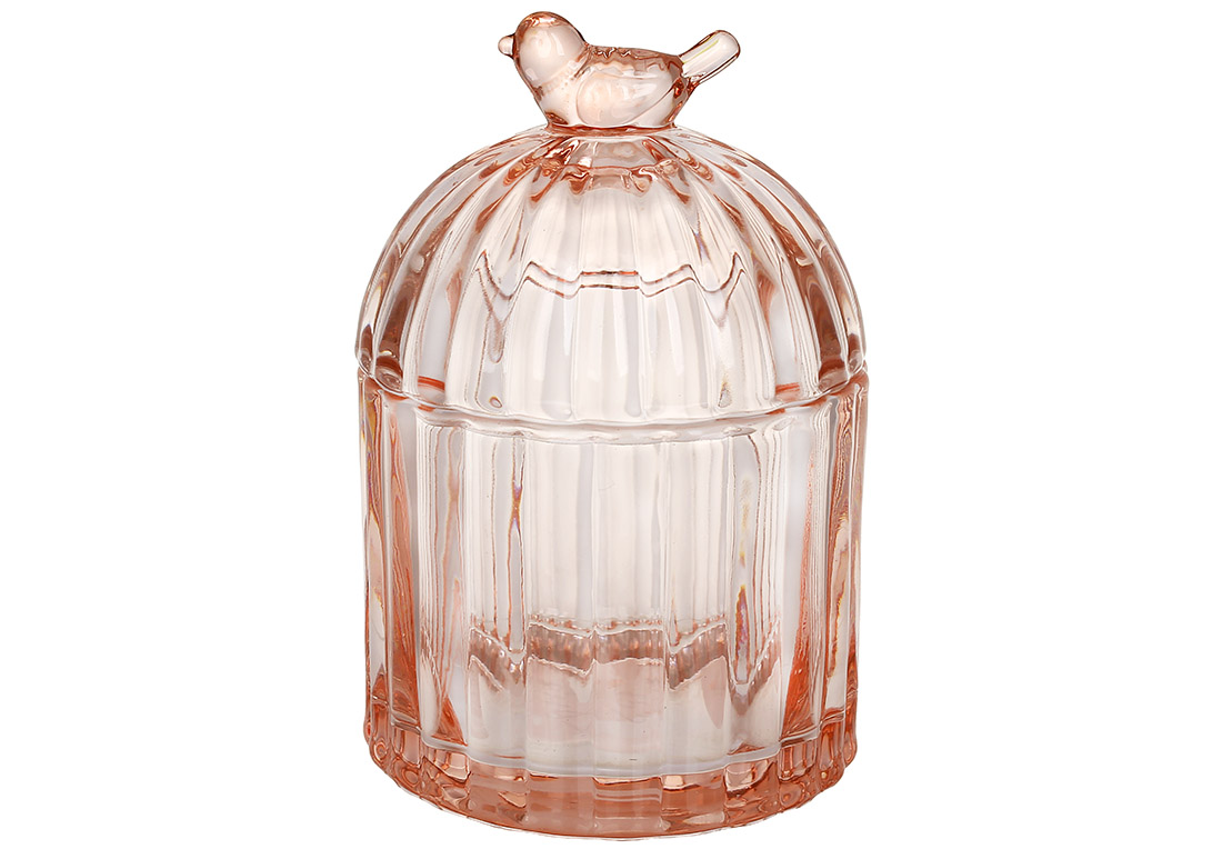 Скляна банка для зберігання d8см, h12см, колір - прозорий рожевий