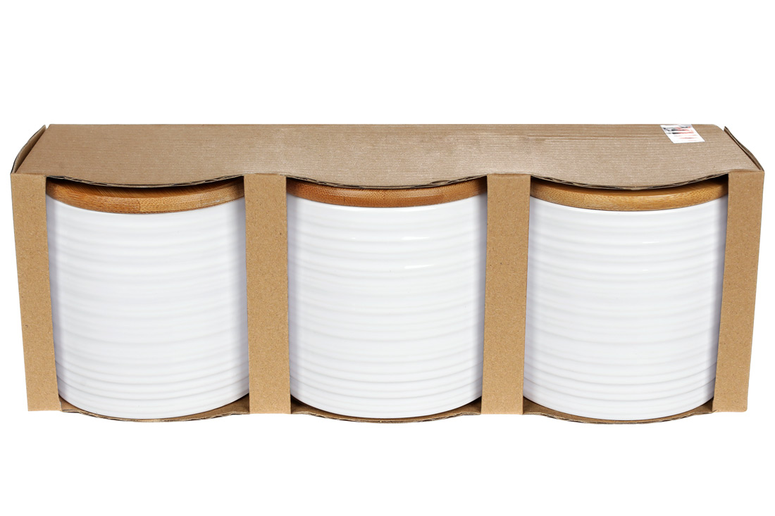 Набір (3шт) керамічних банок 430мл з бамбуковими кришками з об'ємним малюнком Лінії, колір - білий Фабричний брак