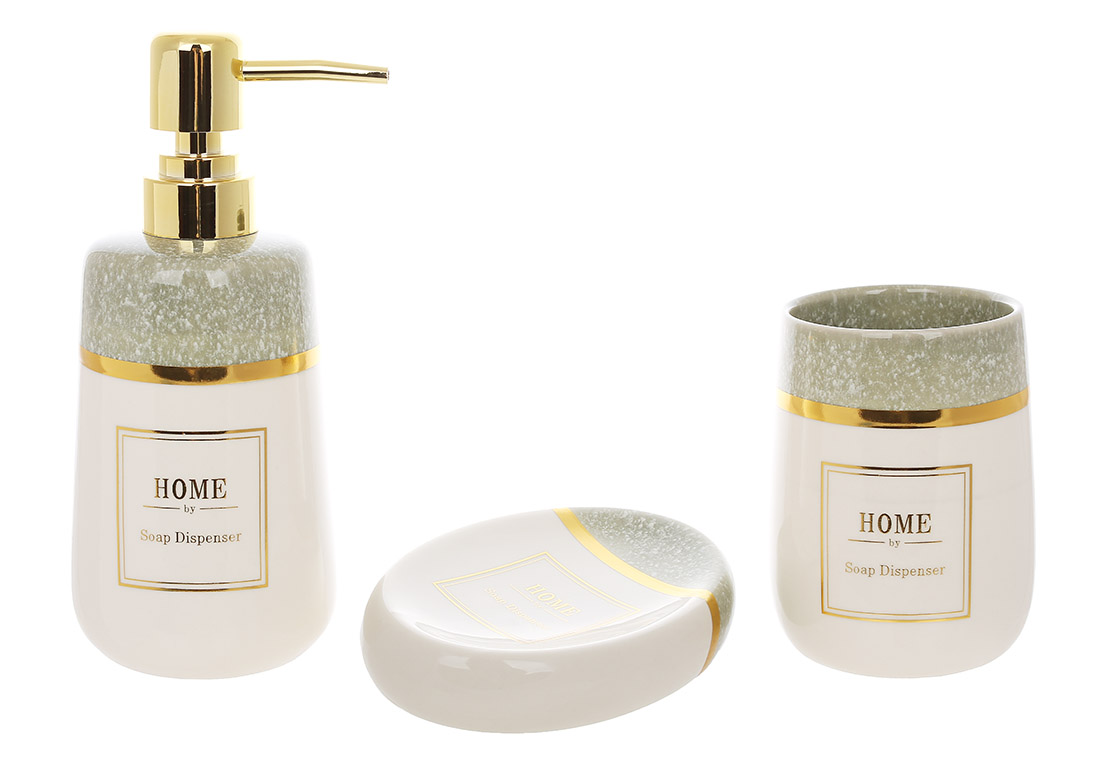 Набір для ванної Home (3 предмети): дозатор, стакан, мильниця, колір - білий із зеленим Фабричний брак