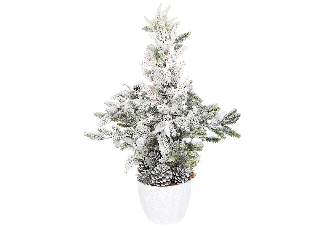 Ялинка декоративна засніжена з шишками та ягодами в горщику 73см