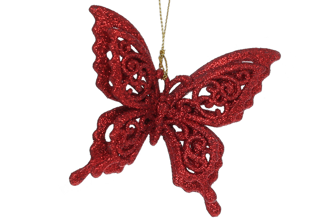 Ялинкова прикраса Метелик 8см, колір - червоний