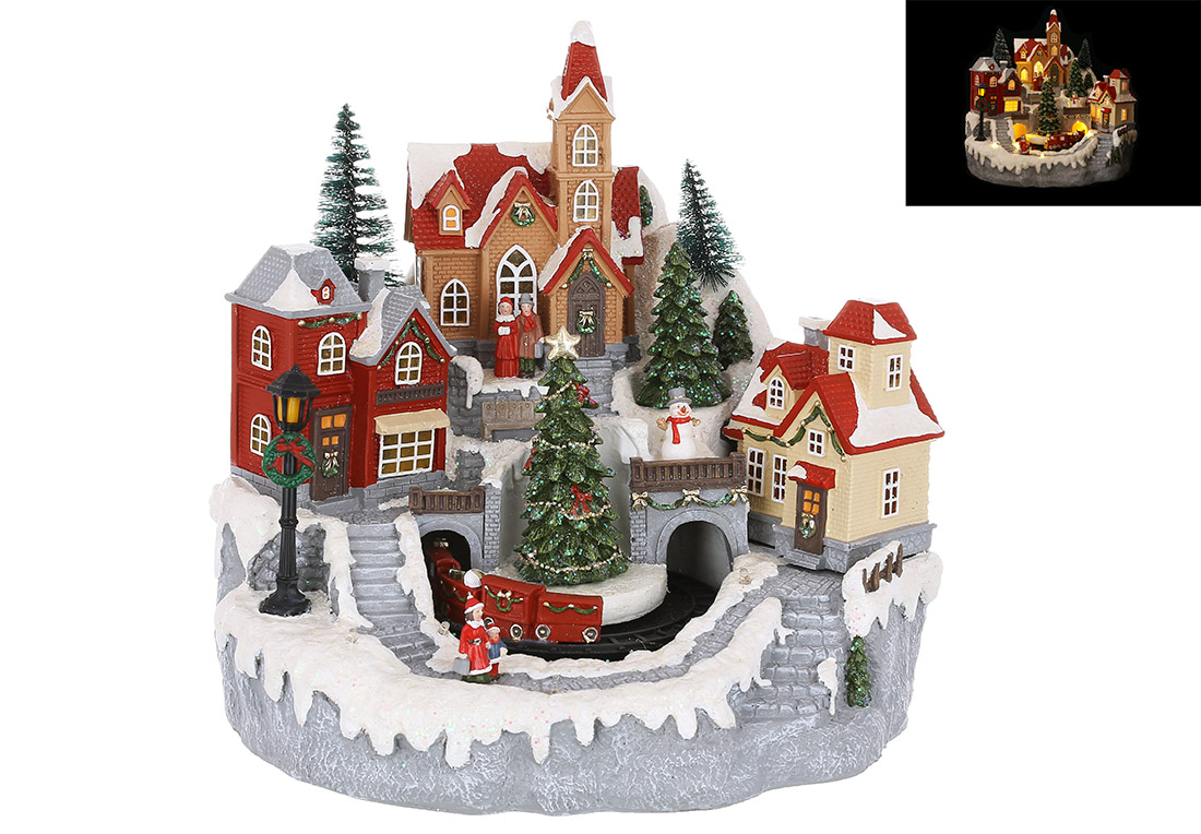 Декоративна фігура Зимове місто з LED, з рухомим поїздом і музикою Jingle Bells, 28*28.5*27см
