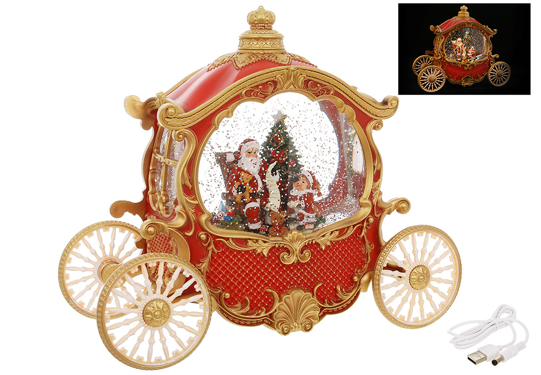 Музична водяна фігура Карета з LED підсвічуванням ( пісня Jingle Bells) 21.5см ( есть вход для USB кабеля)