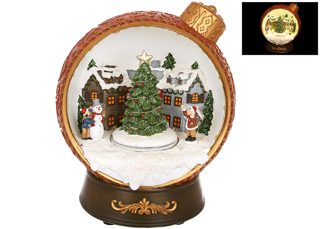 Музична фігура Ялинкова куля 22.5см, з LED підсвічуванням і рухомою Ялинкою (пісня Jingle Bell)