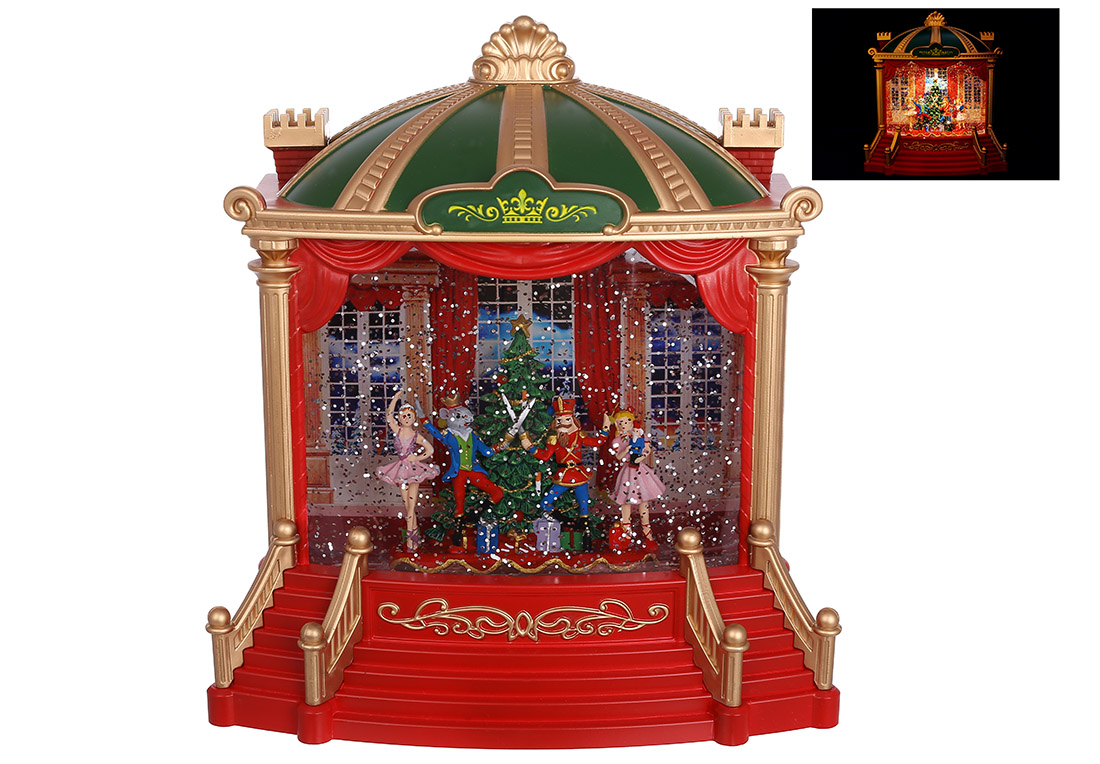Музична водяна фігура Театр з LED підсвічуванням (пісня Jingle Bells) 22*11*23см