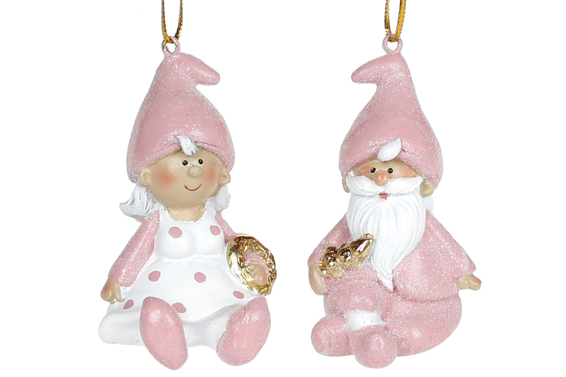 Декоративна підвісна фігурка Гномик, 6.5см, 2 дизайни, колір - рожевий з білим 823-083