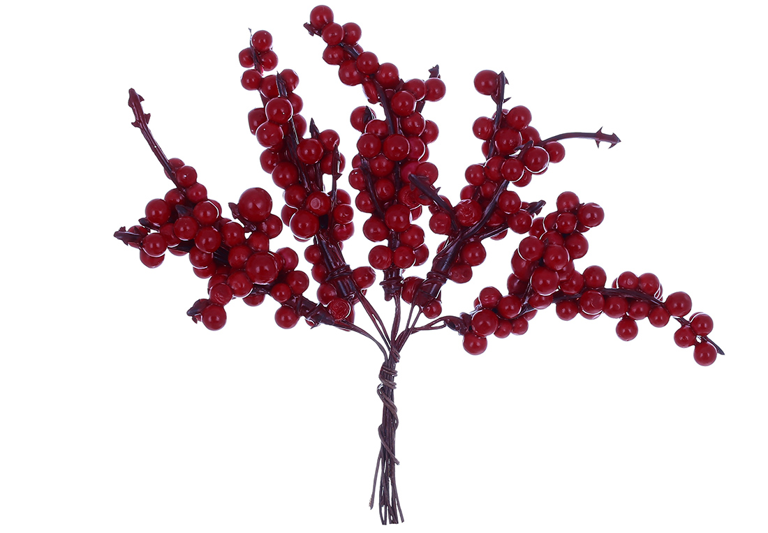Декоративні перламутрові ягоди в пучку, 16см, колір - червоний 839-774