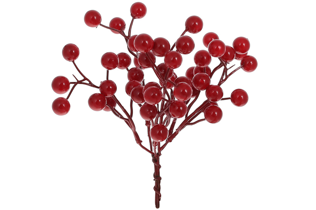 Декоративна гілка листя і ягід в гліттері 80см, колір - золото і червоний, 2 дизайни