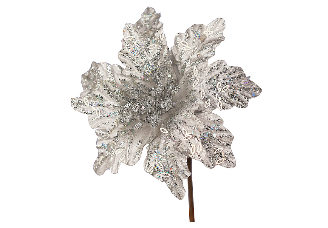 Декоративна квітка Пуансетія 22см, колір - срібло 839-952