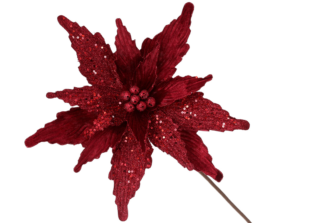 Декоративна квітка Пуансеттія 30см, довжина ніжки 50см, колір - бордо 333-703
