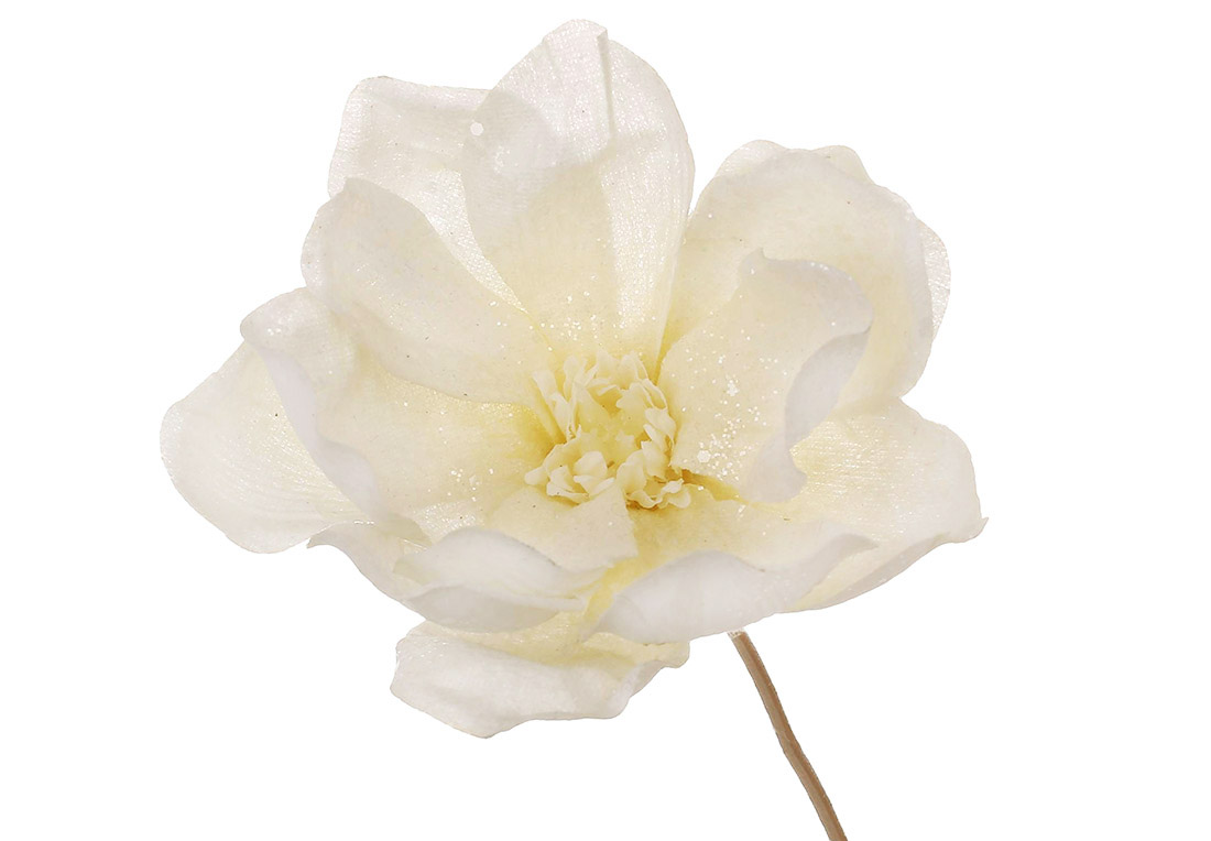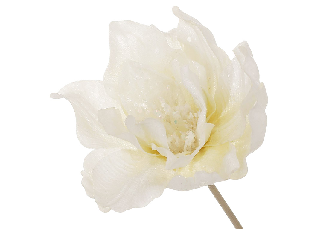 Декоративна квітка Магнолія в гліттері 34см, колір - кремово - білий
