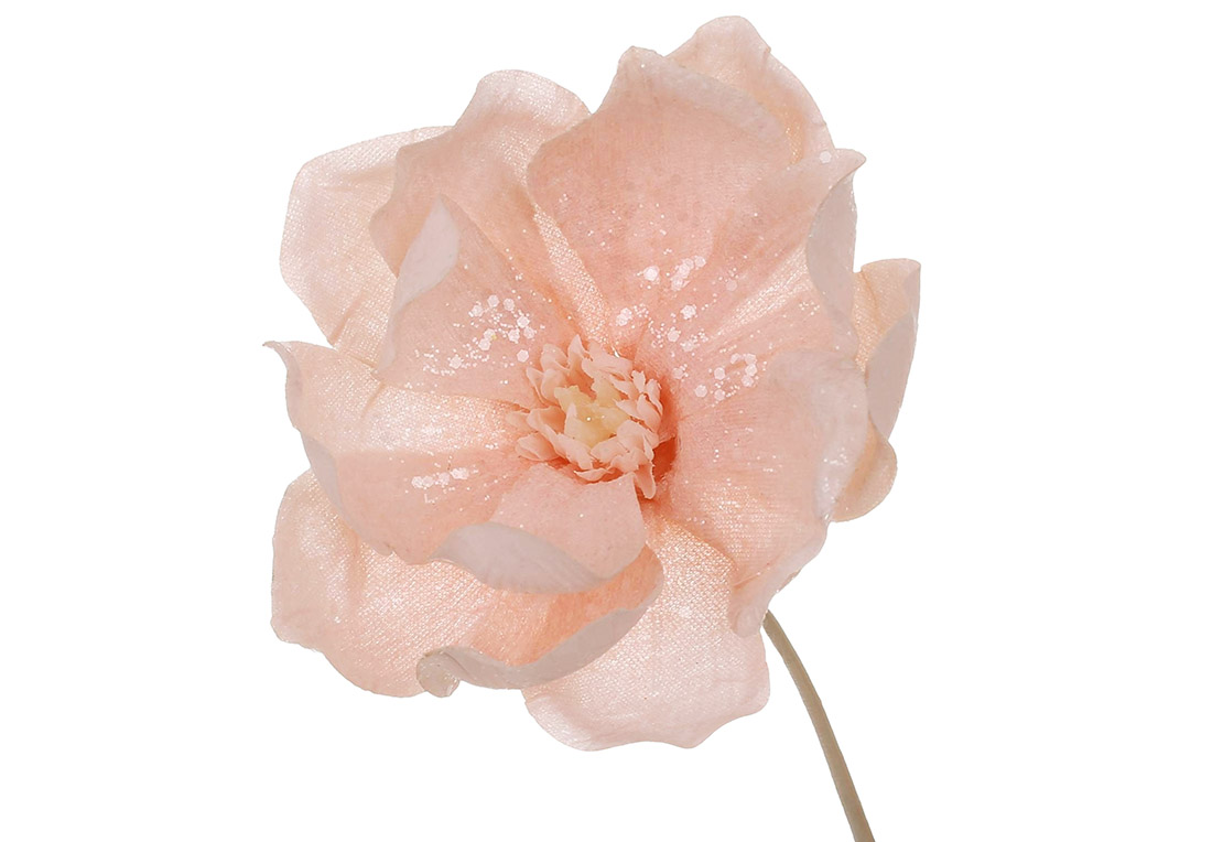 Декоративна квітка Магнолія в гліттері 34см, колір - рожевий