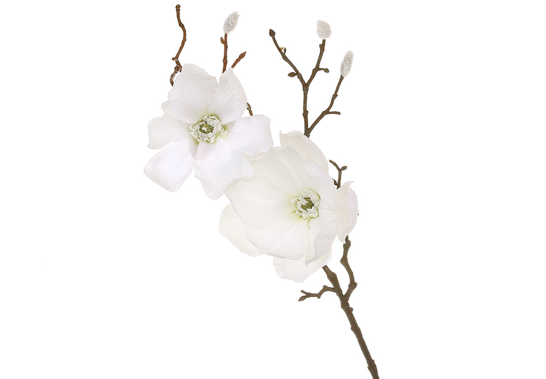 Декоративна гілка засніженої Магнолії 66см, колір - білий