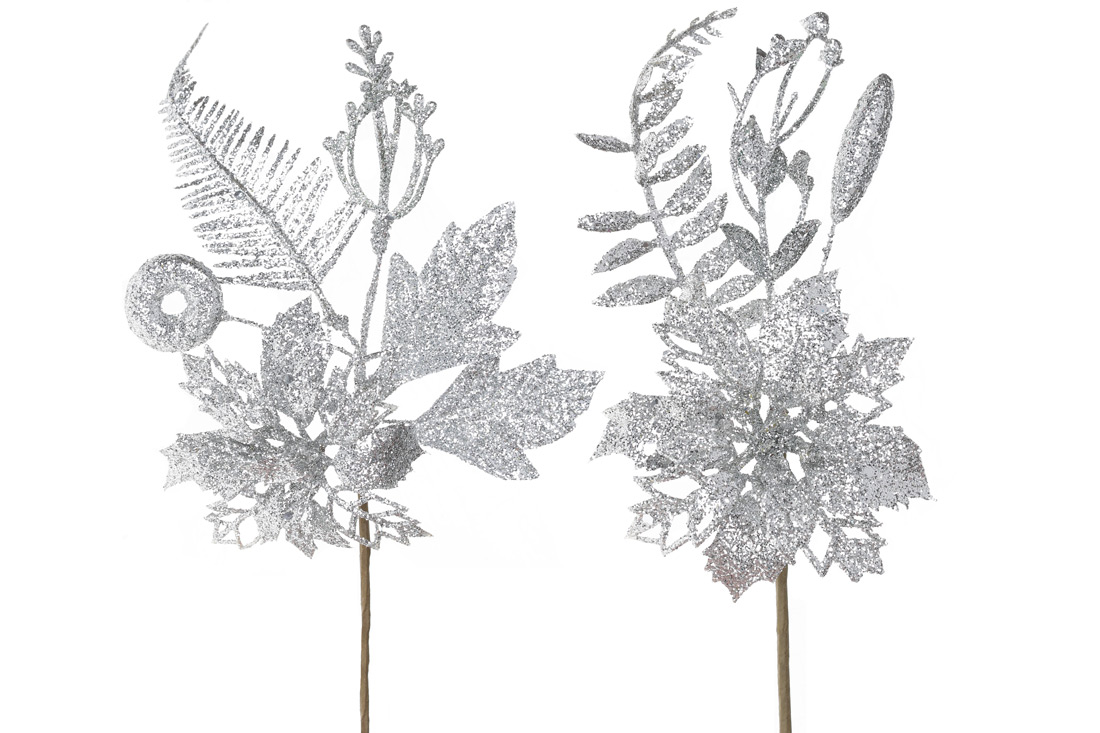 Декоротивний букетик, 21см, колір - срібло гліттер, 2 дизайни