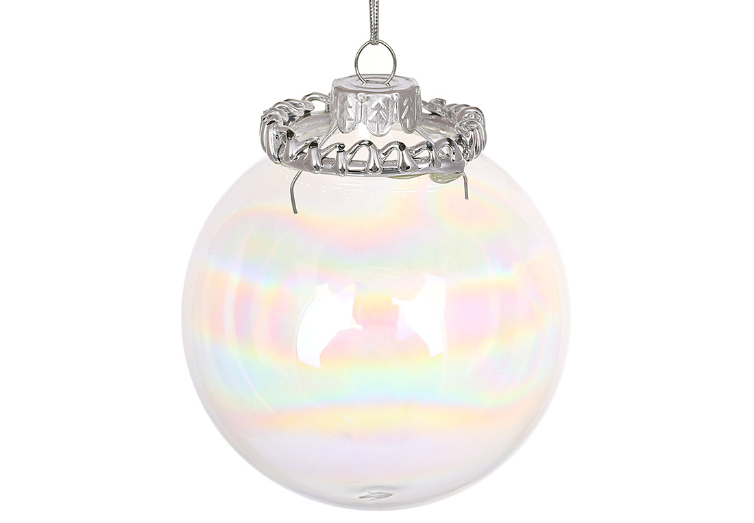 Ялинкова куля зі скла 8 см, колір - перламутр