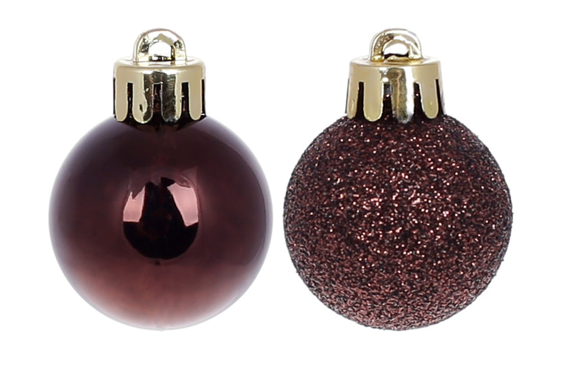 Набір ялинкових куль 3см, колір - темний шоколад, 24шт:13шт глянець та 11шт гліттер