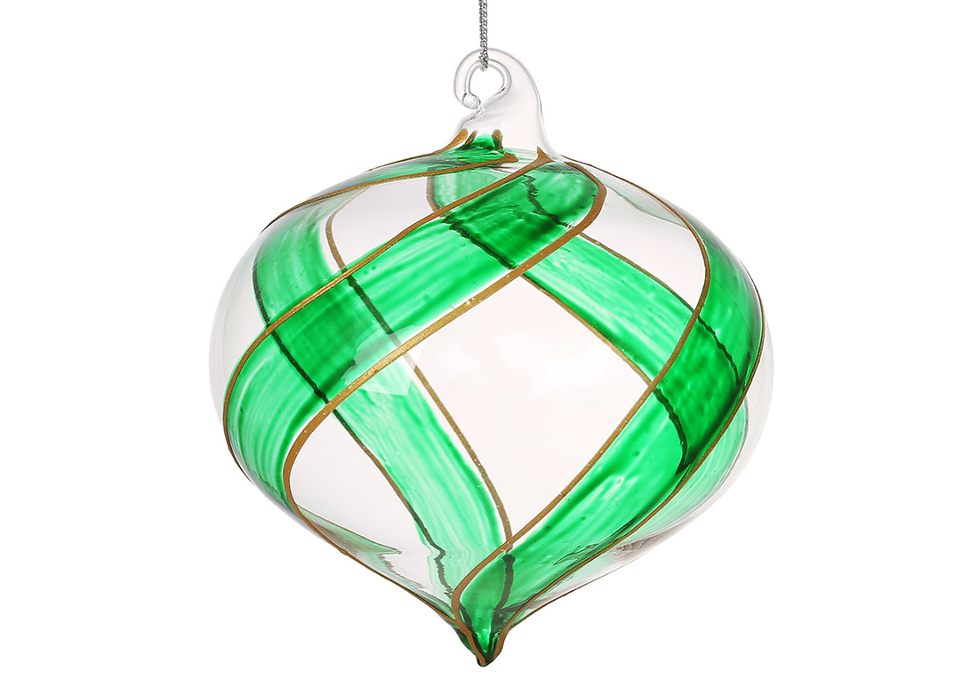 Ялинкова прикраса з крученим дизайном, d 10*12см, колір - прозорий із зеленим