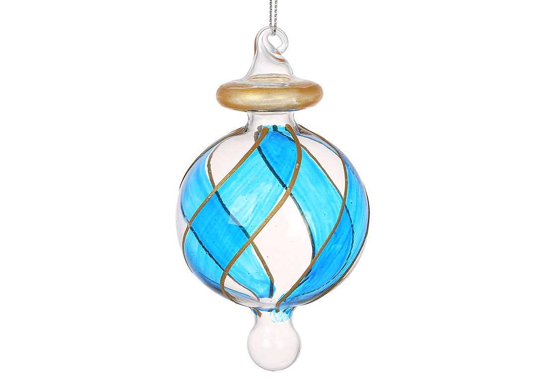 Ялинкова прикраса з крученим дизайном, d 10*12см, колір - прозорий з синім
