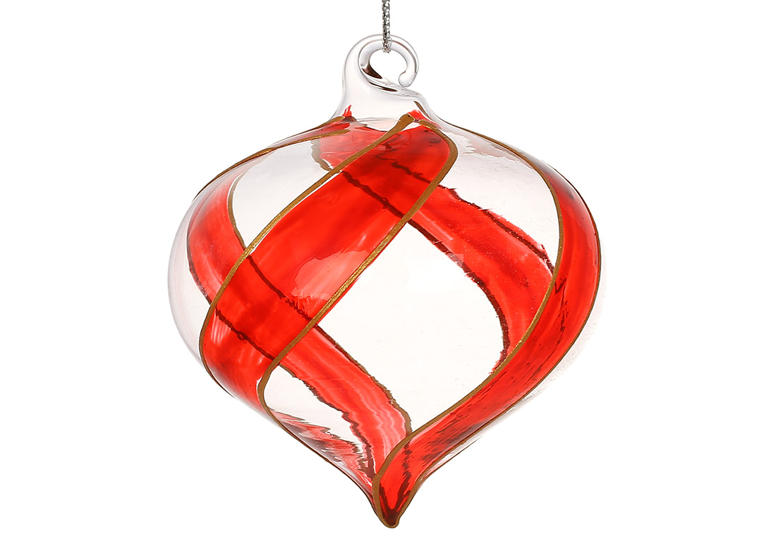 Ялинкова прикраса з крученим дизайном, d 10*12см, колір - прозорий з червоним