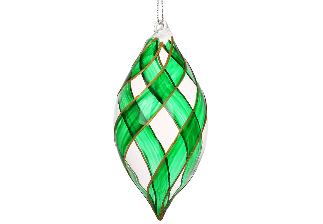 Ялинкова прикраса з крученим дизайном, d 6*12см, колір - прозорий із зеленим