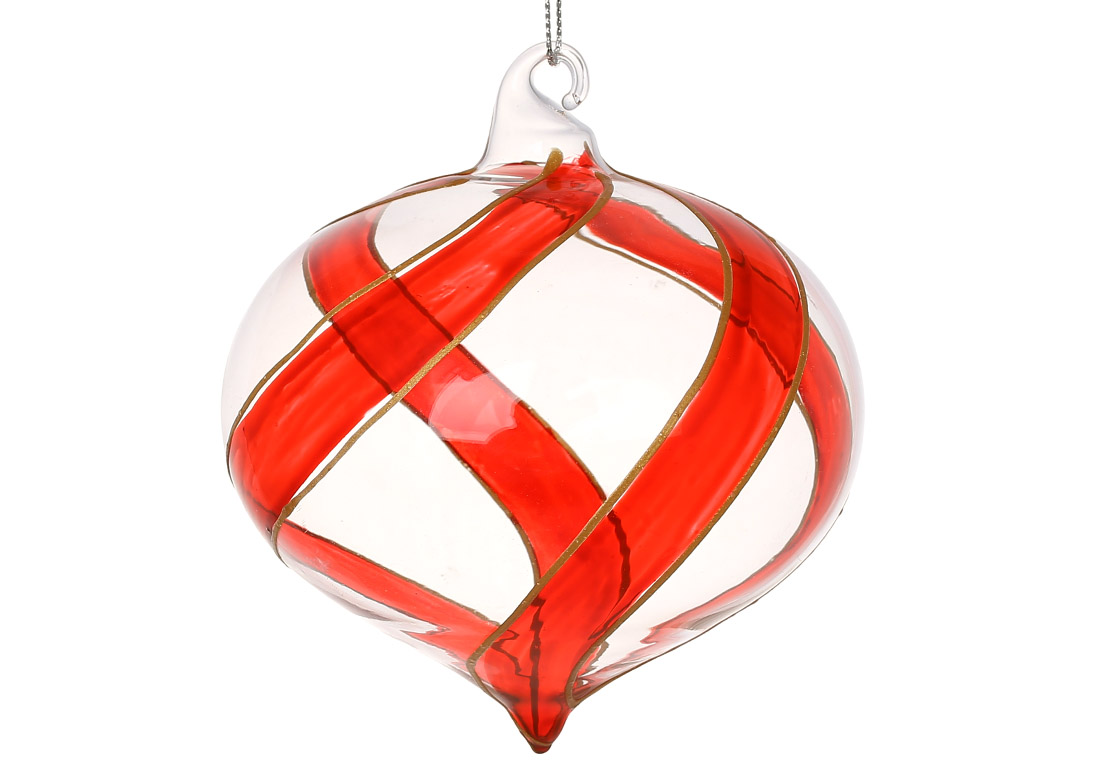 Ялинкова прикраса з крученим дизайном, d 10*12см, колір - прозорий з червоним