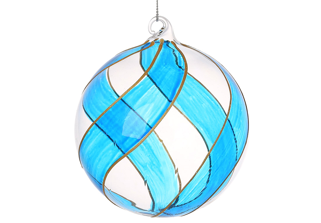 Ялинкова прикраса з крученим дизайном, d 10*12см, колір - прозорий з синім