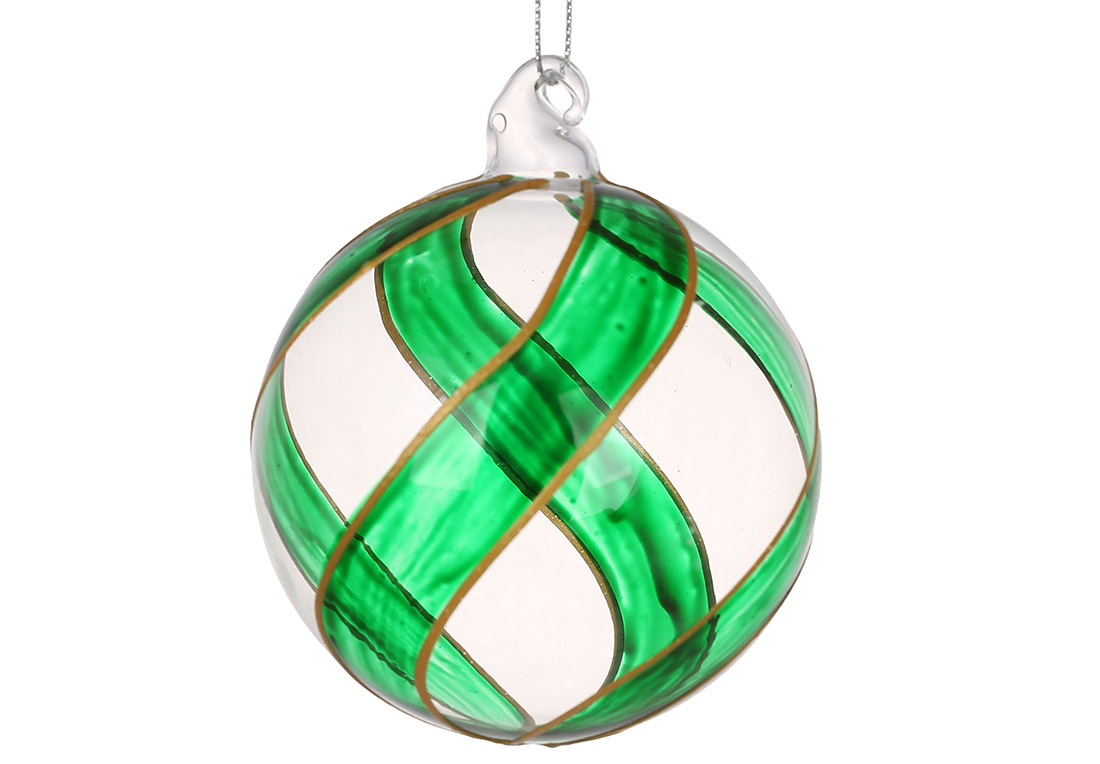 Ялинкова куля з крученим дизайном, d 8см, колір - прозорий із зеленим