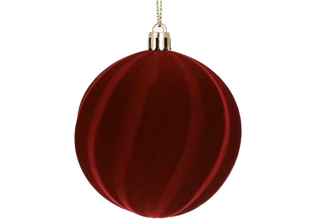 Ялинкова куля витої форми з флоковим напиленням 8см, колір - бургунді J88-131