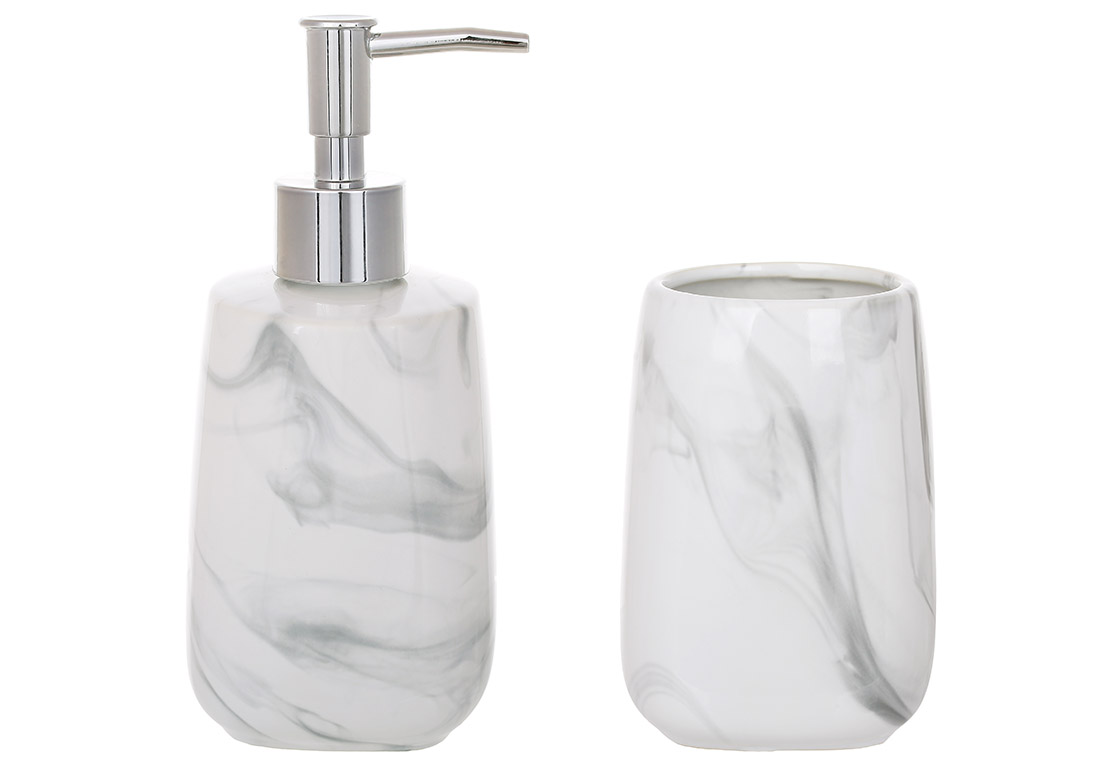Набір для ванної (2 предмети): дозатор 425мл, склянка, дизайн - білий мармур