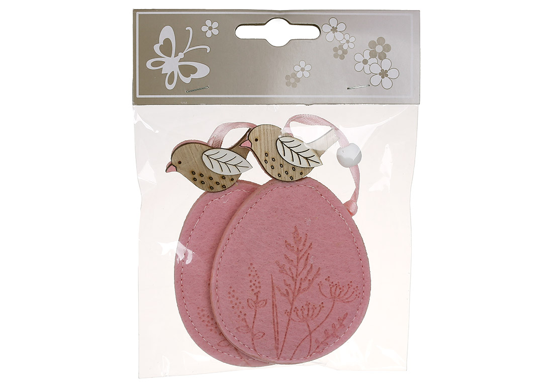 Набір Пасхальних підвісок (2 шт) Яйце з фетру з дерев'яним декором Пташка, 7*10.5см RM9-793
