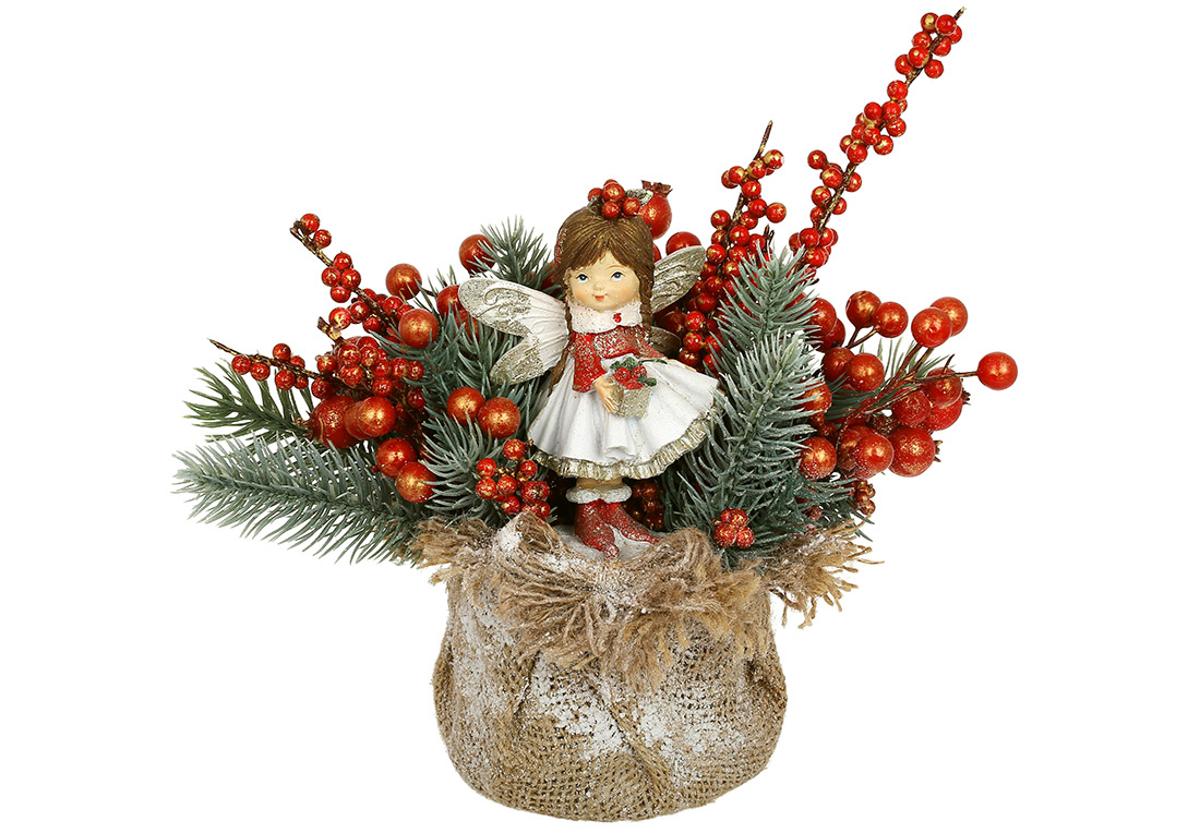 Новорічна композиція в джутовому мішечку (хвоя, ягоди) 27*19*21см