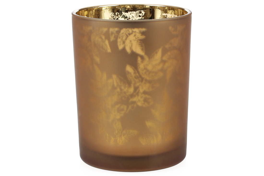 Свічник скляний з малюнком Листя, колір - коричневий, 12.5см 549-133
