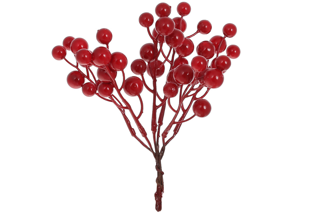 Декоративна гілка листя і ягід в гліттері 80см, колір - золото і червоний, 2 дизайни