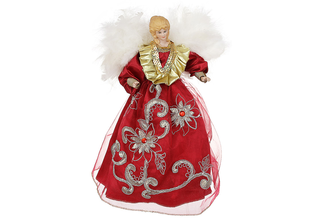 Різдвяна фігура Ангел 41см, колір - червоний із золотом