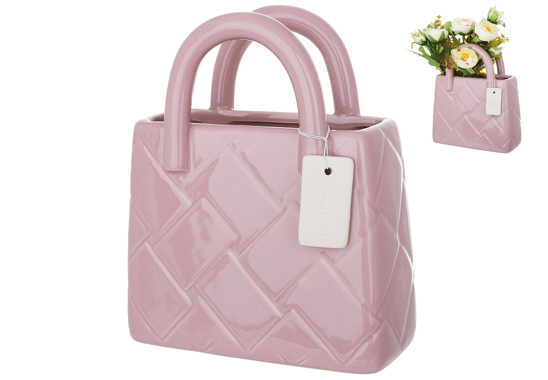 Ваза керамічна Сумочка 15.5*7*18см, колір - пудровий Уцінка - фабричний брак