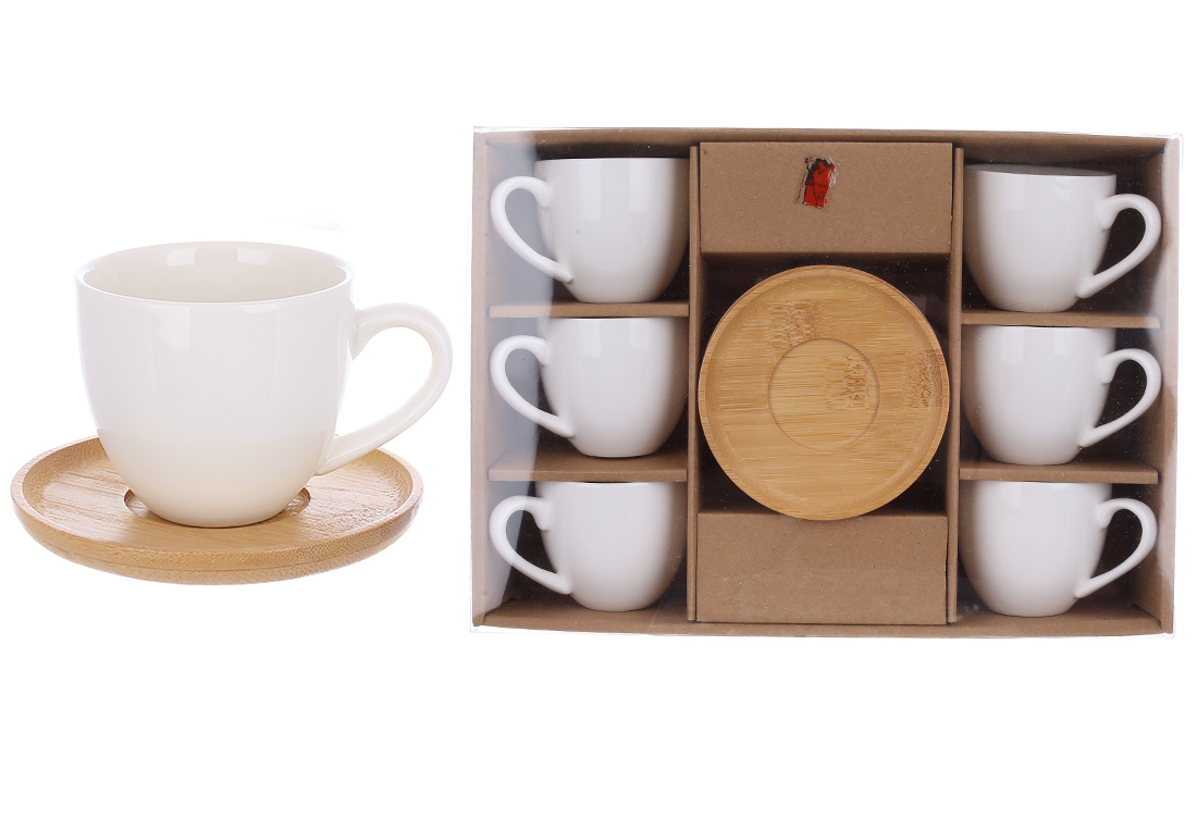 Набір порцелянових чашок з бамбуковими блюдцями (4шт) Coffee 100мл /Уцінка/
