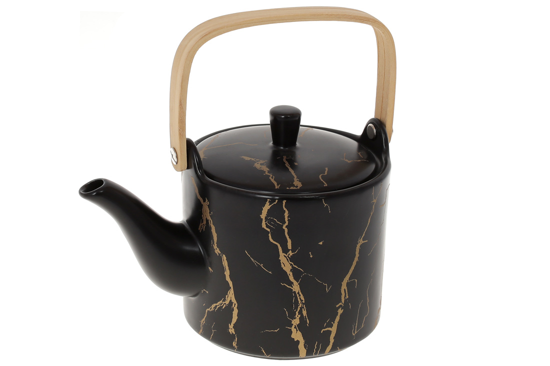 Чайник порцеляновий з бамбуковою ручкою Мармурова Розкіш 800мл, колір - чорний із золотом /Уцінка - кришка не закривається щільно/