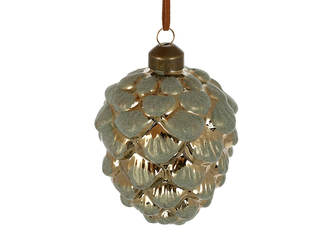 Елочное стеклянное украшение 7.6*10см Шишка