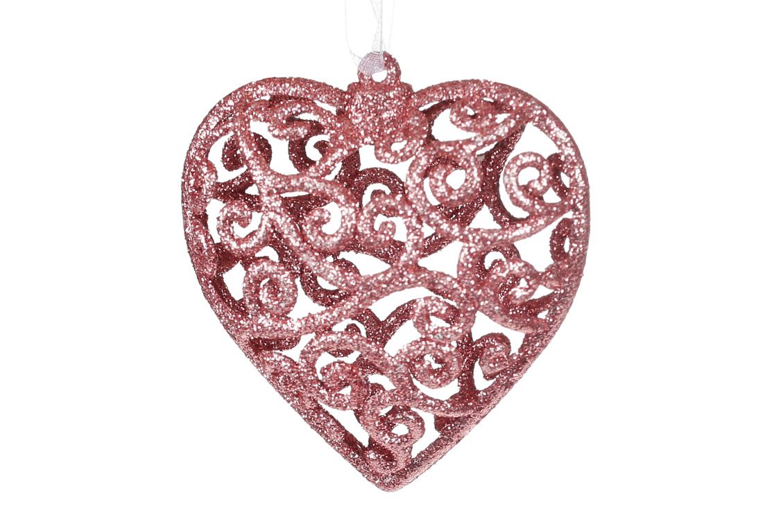 Ёлочное украшение Сердце 7.5*8см, цвет - розово-персиковый