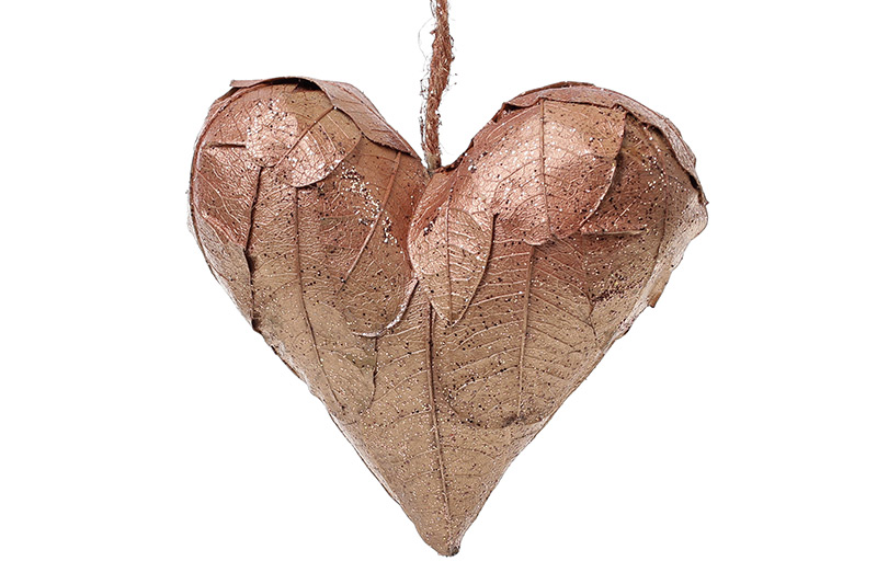 Новогодний подвесной декор Сердце из натуральных листиков бронза с блестками