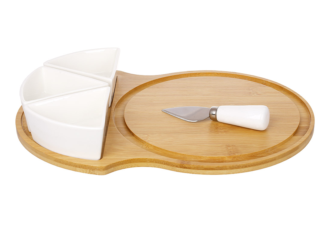 Набор для сыра Naturel с ножом и тремя пиалками на бамбуковой подставке