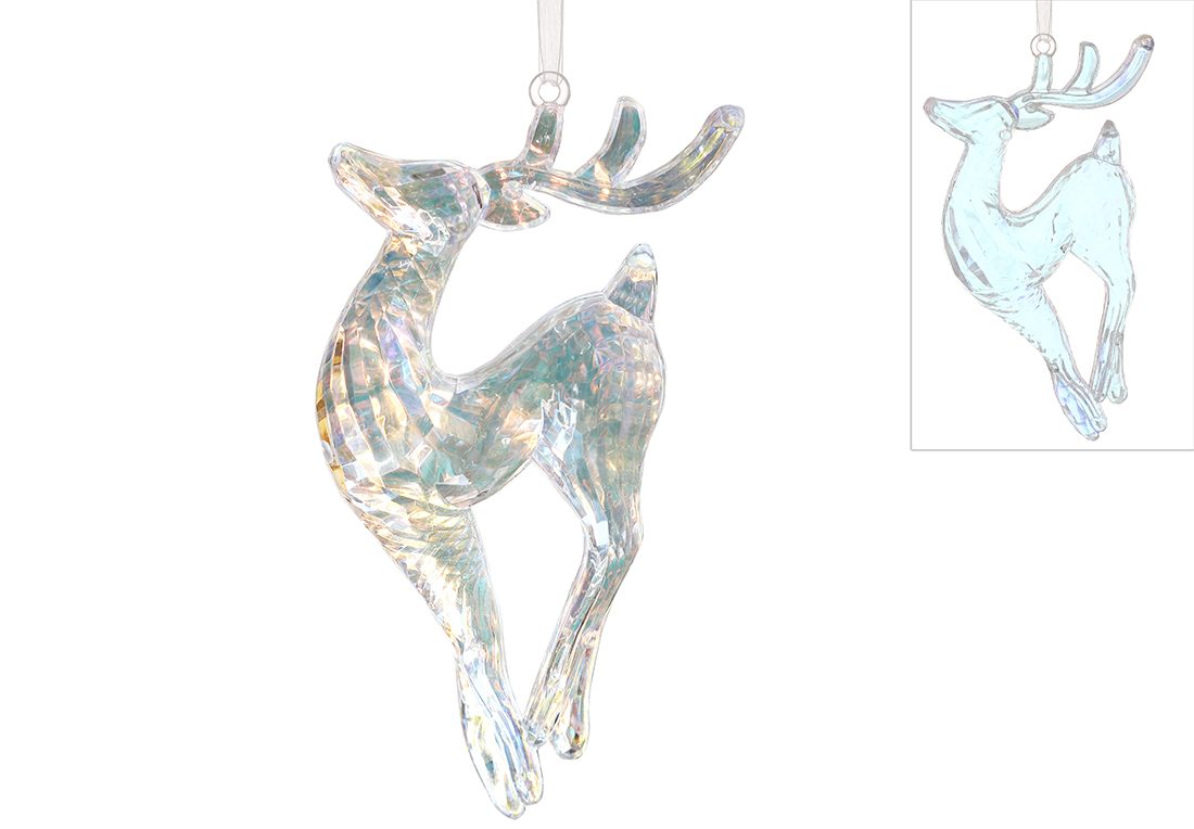Акриловое украшение Олень 16см, цвет - прозрачный с радужным переливом J88-033