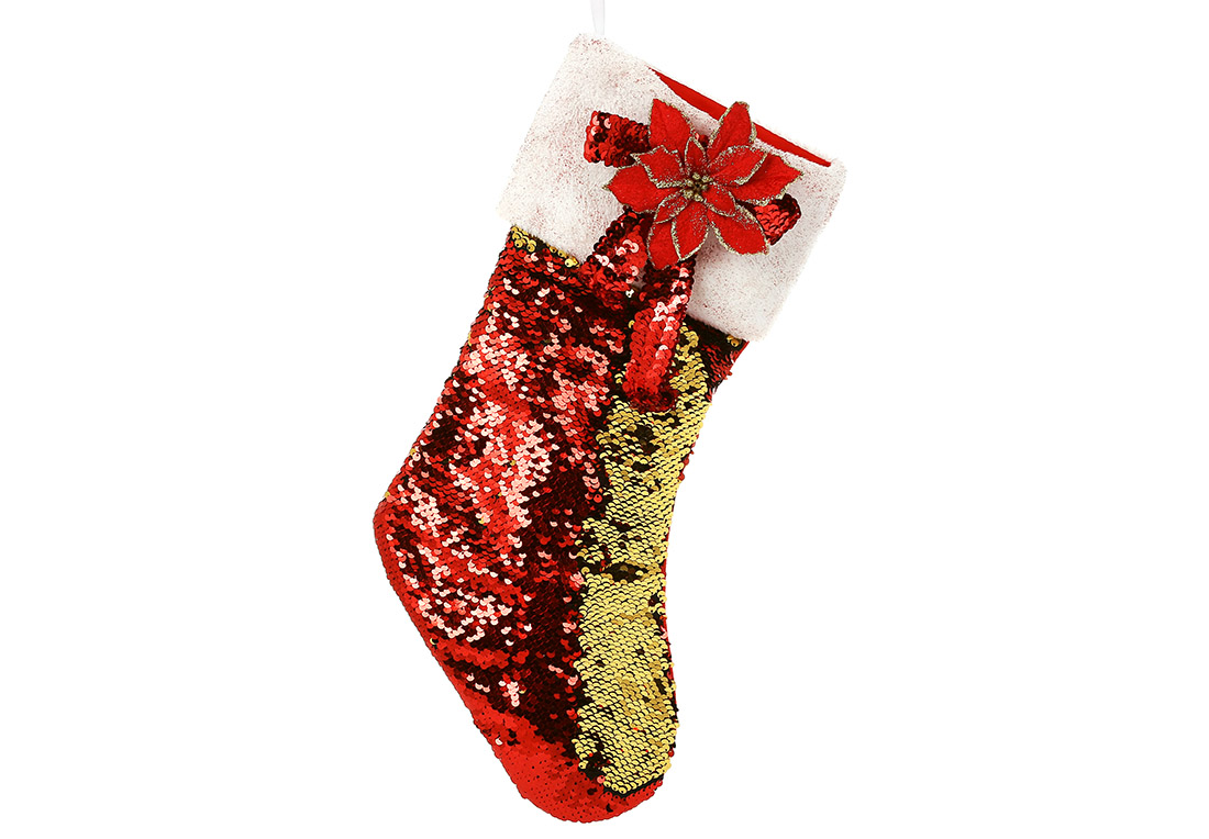 Сапожок для подарков с пайетками 49см, цвет - красный с золотом