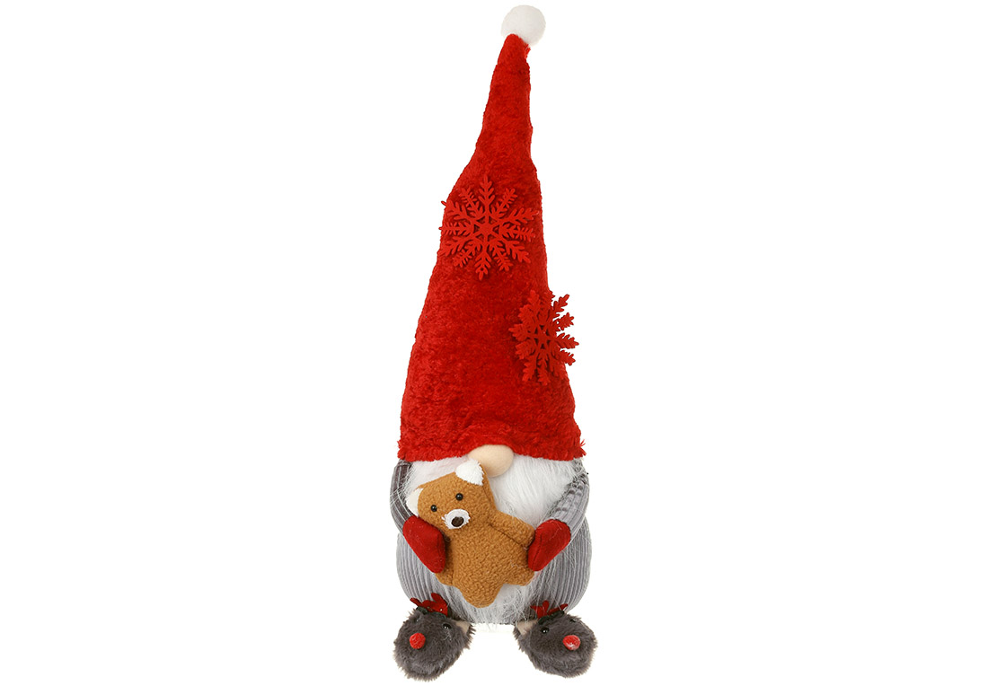 Мягкая игрушка Гном с мишкой, 55см, цвет - красный с серым