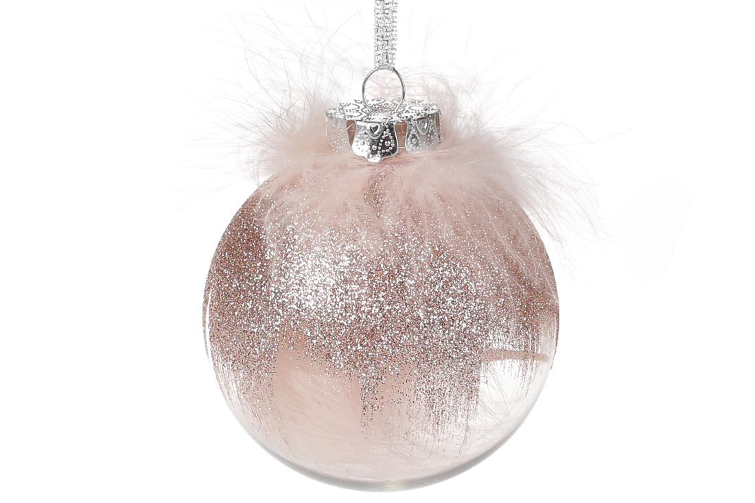 Ёлочный шар 8см с декором из пуха, цвет - пудровый розовый